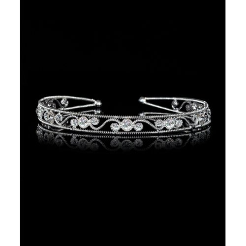 This dazzling headband features a paisley-style design and is riddled with large size Swarovski crystals. Perfect for weddings or any other festive occasion or night out. Headband is silver plated.