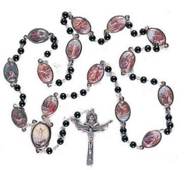 - Stations of the Cross Rosary Chaplet Black Wood Beads Made in Italy Featuring Cromo Nb Original Designs Beautiful Large 24" Rosary.