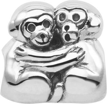 "A friend is someone who knows the song in your heart and can sing it back to you when you have forgotten the words."- Donna Roberts. Persona's oxidized silver Hugging Monkey bead features two monkeys embracing each other. Persona's unique handcrafted charms and charm bracelet products are made with 100% quality sterling silver and come with Persona's total satisfaction guarantee. Persona wants to ensure that you'll love your Persona charms from the moment you receive them and for years to come. If you are not delighted with your order for any reason, please contact us. Our customer servic